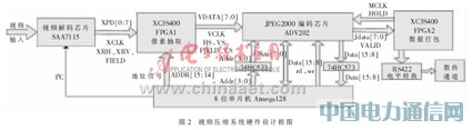 系统流程是模拟视频转换为数字视频、像素抽取、视频压缩、数据打包,最后接数传通道。系统框图如图2所示。