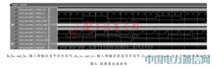由FPGA1完成跳像素和相应同步信号变化,使用Modelsim仿真所得波形如图6所示。为能看到同步信号的相关关系,缩减了帧的行数。