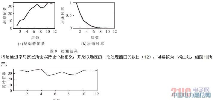 将层通过率与该层所含弱特征个数相乘,并乘以选定的一次处理窗口的数目(12),可得较为平滑曲线,如图10所示。