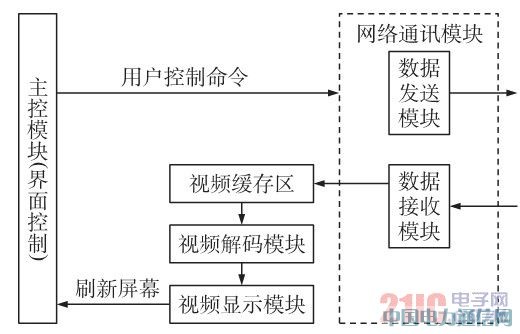 视频服务器是整个系统的核心部分,它将摄像头采集到的原始模拟信号转换为数字信号,并对视频数据进行编码压缩,最后通过Internet 将压缩后的数据传送至客户端。客户端通过TCP/IP 协议访问服务器,通过对视频数据的接收、解码以及显示,实现实时预览功能。客户端也可以根据用户需求发送控制命令,实现对前端设备的控制操作,如云台控制等。