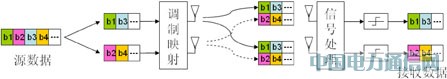 LTE采用的SFBC技术对编码矩阵进行了改进,能保证在有天线损坏的情况下也可以正常传输,传输数据更为简单,图1为SFBC发送端基本框图。