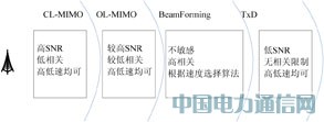 波束成型技术在能够获取信道状态信息时,可以实现较好的信号增益及干扰抑制使的小区边缘性能提升(见表4)。波束成型技术不适合密集城区、室内覆盖等环境,由于反射的原因,接收端会收到太多路径的信号,导致相位叠加的效果不佳。
