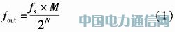 对于正弦波而言,虽然幅度不是线性的,但其相位却是线性变化的,这正是DDS能够合成正弦波的基础。DDS根据频率调节字的位数N,把0°~360°的相位变化平均分成2N等份。假设系统参考时钟为fs;输出频率为fout。在每个时钟周期转过一个角度360°/2N,则可以产生一个频率为fs/2N的正弦波的相位增量。因此,只需选择恰当的频率调节字M,使得fout/fs=M/2N,就可以得到所需的输出频率fout。