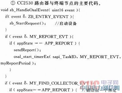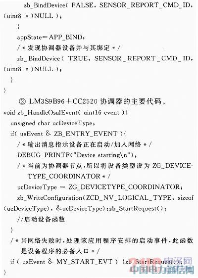 CC2530芯片初始化完毕后,触发ZB_ENTRY_EVENT事件启动设备,该事件在用户自定义的事件处理函数zb_Handle()salEvent()中被处理,调用zb_StartReqtaest()函数启动路由器或者终端设备并加入LM3S9B96协调器建立的网络。