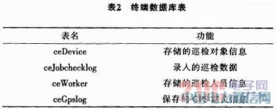 SQLServer CE 3.0数据库是一种功能强大、结构紧凑的小型嵌入式数据库,它不仅提供了关系型数据库的基本功能,还支持事务以及混合数据类型,仅占用非常小的内存和其他系统资源。因此,该数据库非常适合嵌入式系统的开发。在PS终端设计一个基于SQL ServerCE 3.0的小型数据库smart.sdf,该数据库设计了四张数据表;表2显示了该数据库中表的用途。