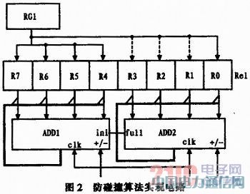 10)重复2 M次高位减1操作后,读写器认为所有在仲裁态的标签都已经被读取,则仲裁过程停止,所有还处于仲裁态的标签返回等待态。防碰撞算法实现电路如图2所示。