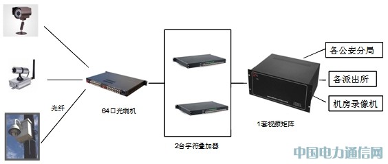 这套系统的摄像设备采用的摄像头厂家为三星、霍尼维尔、海康威视三个厂家。所有的视频摄像头,是通过光纤连接到光端机设备,并加入字符叠加设备进行视频图像的字符叠加工作。