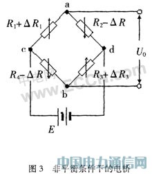 式(2)就是电桥平衡条件。在传感器上贴的电阻片是相同的4片电阻片,在理想状态下,设其电阻值相同,即有