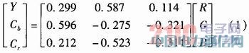 肤色分割可以采用的色彩空间有很多种。其中YCbCr色彩空间具有与人类视觉感知过程类似的构成机理,能很好地反映肤色分布,并反映出肤色聚类特性。YCbCr模型与RGB模型的变换公式如下