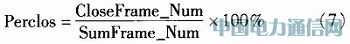 则以每6s视频作为1个检测单元,间隔0.33s取1帧作眼睛状态检测。统计每个检测单元内18帧图像的状态,得到眼睛闭合帧数CloseFr ame_Num和处理的总帧数SumFrame_Num,依据式(7)计算相应的Perclos值。