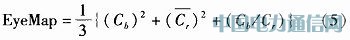 通过观察发现眼睛周围Cb值较高,而Cr值较低,因此由式(5)计算得到特征图,以突出眼部特征。