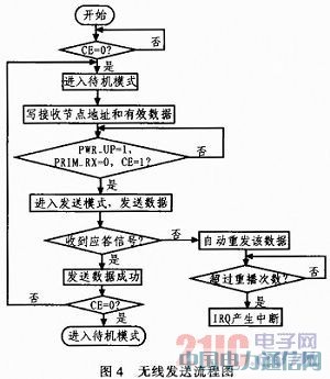 nRF24L01的发送模式的程序流程图如图4所示。
