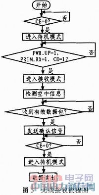 nRF24L01的接收模式的程序流程图如图5所示。