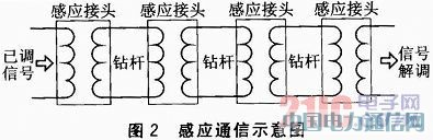 这里的无线通信实际上是一种感应通信,在两个钻杆的相邻处放置两个线圈,其中一个线圈(主线圈)内电流的变化会在其周围产生交变的磁场,这个交变的磁场使另一个线圈(次线圈)产生感应电动势,这就是感应通信的原理,其示意图如图2所示。