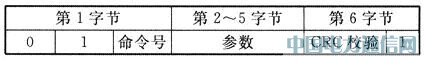 每帧命令都以“01”开头,然后是6位命令号和4字节的参数(高位在前,低位在后),最后是7位CRC校验和1位停止位“1”。