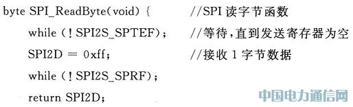 底层的SPI通信是实现最终读写的关键。由于MCF51QE128自带SPI硬件接口,因此只需要读写SPI数据寄存器的值。这里自定了byte、word和dword三种数据类型,分别对应于8位、16位和32位数据。代码如下: