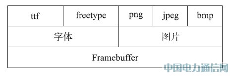 由于Hi3515 的内存空间和显存空间是公用的,为了最大限度的提高编解码性能,并且解决当前市面上主流GUI 占用内存空间较多的问题,我们自主设计了专用GUI,保证了界面灵活美观的同时占用内存空间极小,很好满足了要求。GUI 系统架构如图4 所示。