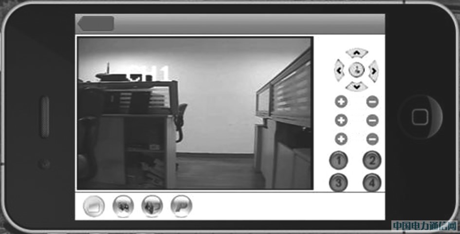 在Linux 提供的Framebuffer 显示接口基础上,系统移植了字体库和图片库。字体库包括ttf 和freetype 字体库,图片库包括png、jpeg 和bmp 图片库。上层主要工作就是设计消息循环,设计多窗口管理模式,编写必要的控件。本文利用自主设计的GUI 为智能云台系统设计了美观的本地界面和客户端界面,整套界面美观大方,简洁实用,图5 是我们为智能手机客户端编写的界面。