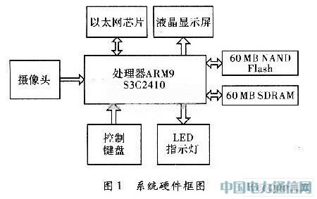 本系统采用三星公司的ARM9系列S3C2410作为处理器,工作频率可达到203 MHz,可满足系统对计算速度的要求。该处理器内置2个USB HOST,本系统可用来挂载USB摄像头。