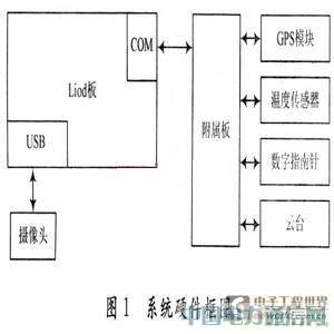 移动天文观测系统以Liod板为主控板,在此基础上扩展了相关电路,制成一块附属板,整体硬件框图如图1所示。