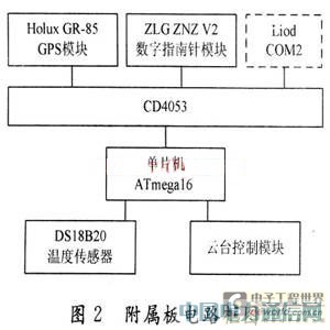 GPS采用了Ho1ux GR-85接收模块,具有快速追踪定位12颗卫星的能力,数据更新速率为1 Hz。GPS模块用来得到当地经纬度及准确时间的信息。