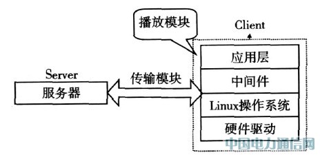 Live555开源代码中playCommon.cpp 实现了以电脑作为接收终端 ,用VLC软件进行接收并播放 ,最后在电脑上显示出 来 的 功 能。研 究 的 内 容 是 将 playCommon.cpp 融合到机顶盒的软件代码中,最终实现以IPTV 机顶盒作为接收终端并对其进行播放,并在电视上显示出来的功能。这就对代码的设计提出了新的要求:一方面 ,playCommon.cpp 获得服务器的URL 是通过在 VLC的RTSP 一栏中输入rtsp ://本机 IP 地址:端口号/要播放的文件名来获取的。然而对于IPTV 机顶盒,传输模块获得的URL是用户通过遥控器选择EPG上的节目时对应的URL.这个 URL是通过中间件中的浏览器读取的,因此这就需要将中间件和传输模块衔接起来。另一方面playCommon.cpp 发送出来的数据流是通过VLC接收并播放的 ,而对于IPTV机顶盒 ,传输模块发送出来的数据流是通过播放模块接收并播放的 .因此就需要衔接传输模块和播放模块。