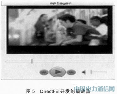 图形界面是以Lite为基础开发的。Lite是基于DirectFB开发的以box为基类的对话框。通过调用Lite可以编写各种暂停、播放、音量等控件,用户使用这些控件与播放器进行直接交互。DirectFB本身并不提供窗口以及对话框管理功能,因而DirectFB更多地被用作底层图形库。参考文献中选择以DirectFB为后端的Cairo图形库进行2D图形开发;参考文献中选择基于GTK+on DirectFB进行嵌入式开发。如今,上层API支持DirectFB的有XDirectFB、DirectFBGL、DFBTerm、DFBSee、DFBPoint、QT on DireelFB、SDL等。采用Lite进行开发的目的,主要是因为它直接使用DirectFB开发对话框,而且源代码只有5 MB左右,具有很快的响应速度,能够有效降低嵌入式设备资源的消耗。