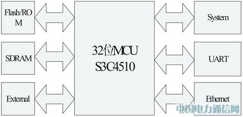 本文采用的系统总体设计框图如图1所是。基于这些基本要求和嵌入式系统自身资源有限的特点,系统处理器选择了三星的S3C4510芯片,并对其进行外围电路扩展如图2所示。