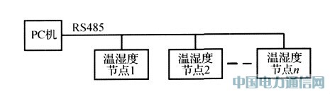 传统的图书馆藏书温湿度监控系统的构成如图2所示。优点是传输距离较远,可靠性较高;缺点是布线困难,增加节点软硬件都需要重新设置。