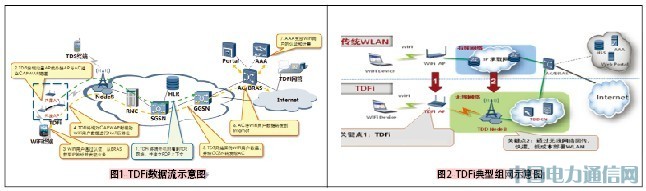 目前移动的TD-SCDMA网络发展还不理想,码资源占用率一直处于较低状况,而从2011年开始,WLAN成爆发式增长,所以,TDFi可以有效促进TD-SCDMA良性发展,并且支持高效快速进行WLAN建设。TDFi网络布网快速而便利、成本低,可充分兼容现有TD-SCDMA网络和中国移动WLAN网络,并有效提升目前TD现网的网络利用率,典型组网方式如图2所示。