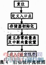 系统启动时首先运行ARM内部ROM的BOOTLOADER程序,通过这段程序,可以初始化硬件、建立内存空间映射图。BOOT LOADER程序基本流程图如图4所示。