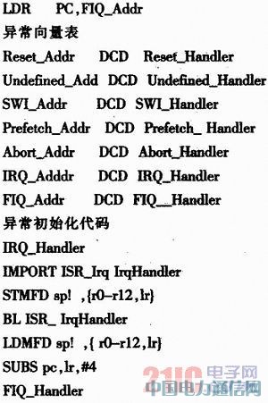 数据采集系统的软件包括ARM初始化程序、中断向量表和应用程序。