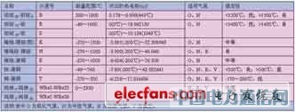 热电偶产生的是电压(电势)信号,属于缓变的毫伏级弱信号,表1是常用的各种热电偶的温度测量范围和对应的热电势范围。
