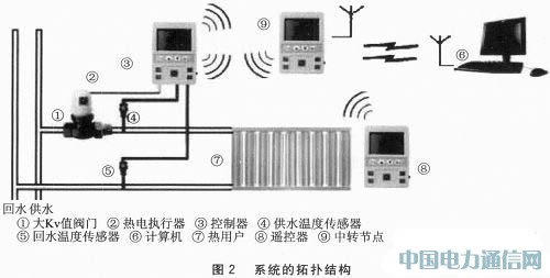 整个系统总体上可以分为3层:管理层、中继层和现场仪表层。现场仪表层又可以分为控制器和遥控器。系统的拓扑结构如图2所示。