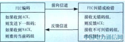 常FEC 部分用来纠正信道中经出现的错误,以减少重传次数进而提高系统通过率;ARQ 部分的作用是纠正那些不常出现的、FEC不能纠正的错误,即当校验结果正确时,往发送端反馈ACK信号,当校验错误时,则往发送端反馈NACK 包。