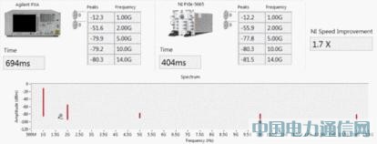 图8.在NI PXIe-5665和Agilent PXA上使用列表模式。相比大多数列表模式测试,NI 5665 要快1.5-2倍。
