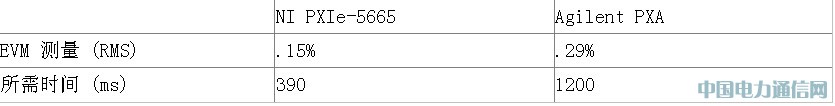图 10. 使用Agilent PXA 和 NI PXIe-5665进行LTE EVM 测试。