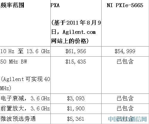 在下表中,对NI 5665以及相对应的Agilent PXA价格进行了比较。
