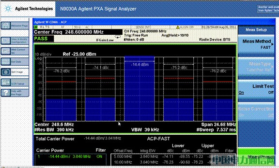 注意:我们并不是要对分析仪的最佳ACPR性能进行测试,而只是测量在现有设置基础上的最佳结果。使用SAW滤波器是为了让上 下相邻频道的测量结果更佳。