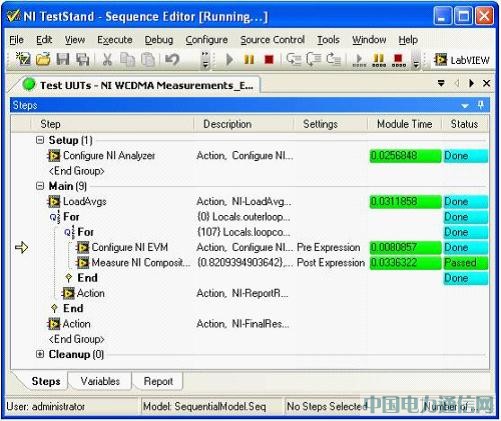 在一个常见的测试执行架构,例如NI TestStand软件中,你可以很快地配置一个自动测试序列。NI TestStand软件不仅提供一个内置的框架用于进行序列化的测试,还可以对每个测试所花费的时间进行统计。如图3所示,即为NI TestStand 在一个自动测试序列中对测试时间统计的界面截图。