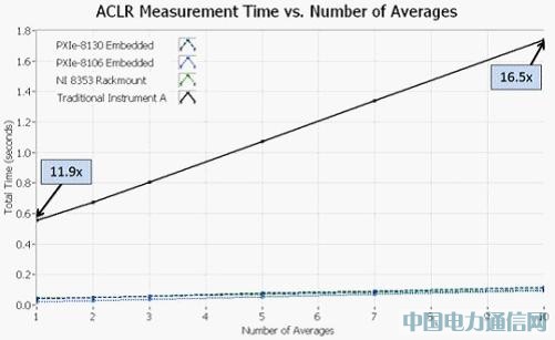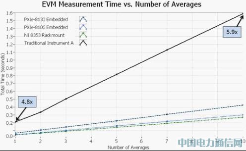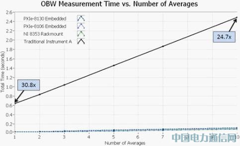 对于处理器密集型的物理层测量来说,选择不同的处理器对总体的测量时间影响很大。在图7至9中,可以看到传统仪器和PXI仪器在测量时间和平均次数之间的关系。