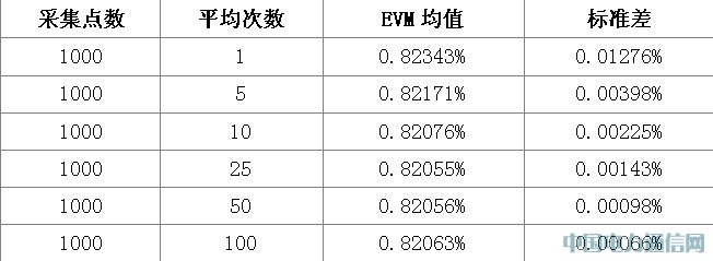 表3. 在不同的平均次数的情况下的EVM和标准差。