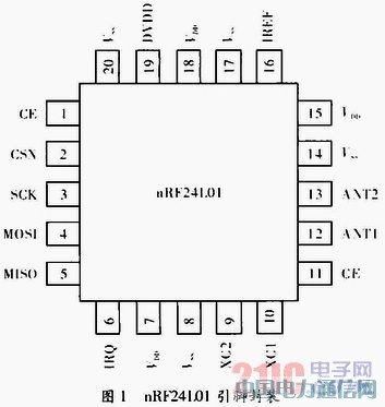 nRF24L01引脚封装如图1所示。