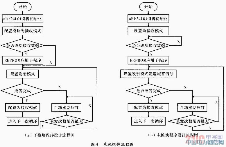 图4为子模块和主模块程序设计流程图,软件开发环境为KeilC uVision3。