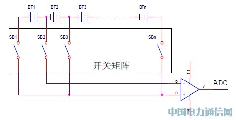 采用模拟开关的方案通过模拟开关选择测量通道,每个通道采用运算放大器组成线性采样电路。当选中需要进行测量的通道后,模拟开关的输出经电压跟随器送入模数转换器进行模数转换。该方法根据串联电池组总电压的大小,选择适当的放大倍数,不必电阻分压网络或改变低电位就可以直接测量任意一只电池的电压,测量方便。但是该方法需要数量众多的运放和精密匹配电阻,成本高,且电阻的分散性会导致测量结果分散性较高。