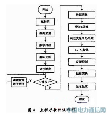 温度采集和显示、键盘处理等在编程时作为相对独立的功能模块来实现,并自主程序运行中按照设定的流程来调用,完成相应的任务后再返回主程序即可。