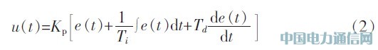 式中u(t)是PID调节器的输出量,e(t)是PID调节器的输入量,Kp为比例系数,Ti为积分时间常数,Td为微分时间常数。