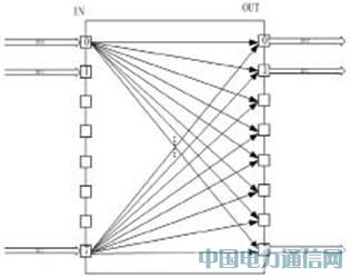图3展示了可编程衰减器的8×8结构。本衰减器可对任一路无线信道模拟其它无线信道对其的影响。通过调节其它信道与该信道之间的衰减值,就可在实验室模拟复杂的外场环境。