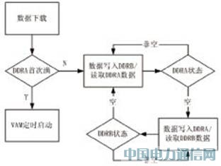 当定时器计时到定时数据代表的时间点时将该时刻的衰减值下发到对应通道的衰减器上,实现无线信道衰减随时间动态变化的场景;同时FPGA继续将CPU下发的数据写到DDRB中。当DDRB充满后,CPU暂停下发数据,直到DDRA数据读取完毕,此时FPGA切换到读取DDRB的数据,继续向DDRA写入新的数据。
