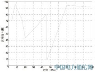 图8展示了静态场景回放的某一个时间段内可编程衰减器一个无线信道内衰减变化。在该模式下本衰减器可在1ms的时间间隔内实现0~120dB的衰减跳变。